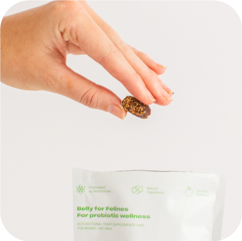 We use a proprietary blend of four probiotics to promote biodiversity in the gut, increase the good flora, and reduce the bad flora that leads to poor health and gut-related conditions. Belly’s combination of probiotics and cranberry is perfect for boosting overall wellness and helping cats who suffer from digestive and urinary dysfunction.